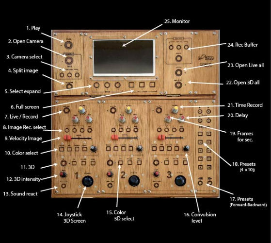 8.- Live record images 1,2,3 and Stop, 4 buttons wood